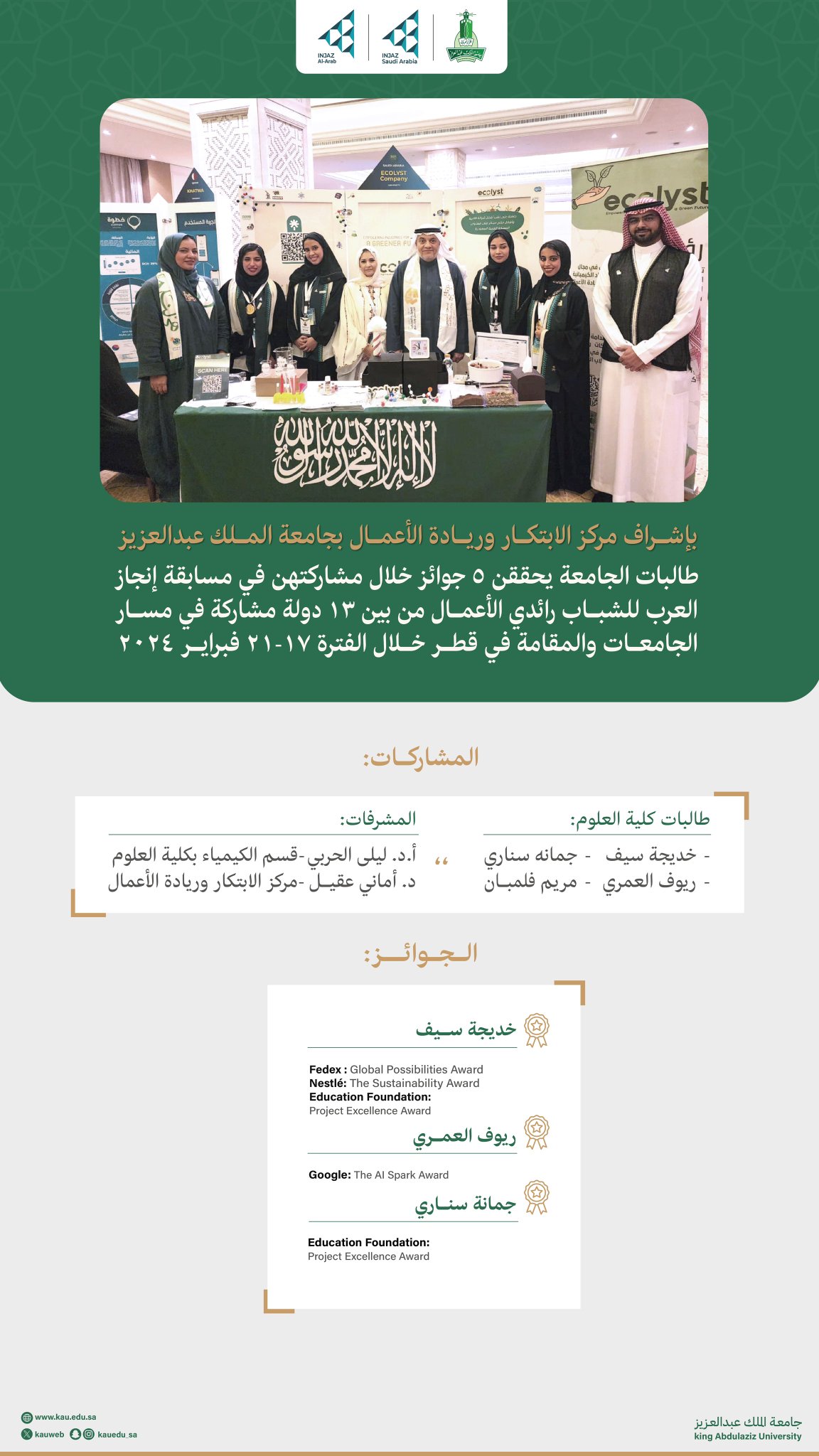 جامعة الملك عبدالعزيز تحصد مراكز متقدمة في مسابقة الخطابة البيئية بدبي